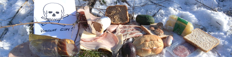 Antigiftködertraining Leider lauern heutzutage beim Spazierengehen vielfache Gefahren für unsere Hunde. Immer wieder gibt es Medienberichte über Vergiftungen, Nägel- oder Rasierklingen-Präparationen. Deshalb ist es lebensnotwendig, dass Ihr Hund lernt nichts mehr vom Boden aufzunehmen. Auf den deutlichen Befehl hin "LASS!!" soll er vom Objekt seiner Begierde ablassen und sich seinem Halter zuwenden. Grundkurs: 4 Stunden Aufbaukurs: 4 Stunden Auffrischungskurs: 2 Stunden |